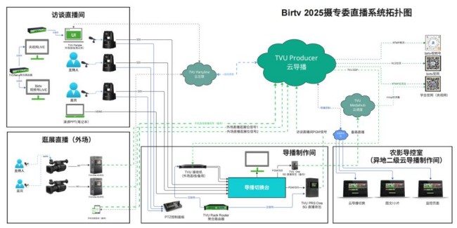 BIRTV & CSMPTE联合直播项目服务于BIRTV2025期间”摄彩视界·智启未来”系列活动,于2025年7月23日至24日完成高密度直播任务。项目团队以构建”云端化+IP化+智能化”的新型制播体系为目标,深度应用TVU云制播方案,在复杂展会环境中呈现了高品质直播效果。