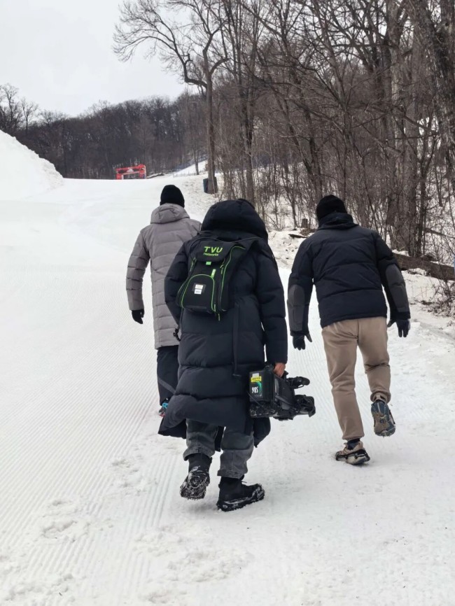 7套TVU One分别负责赛道出发点、高速跟拍、跳跃动作特写以及终点冲刺等机位的信号采集。摄像师可摆脱线缆束缚,在雪道两侧复杂地形中灵活移动,提升机位覆盖与跟拍效率。